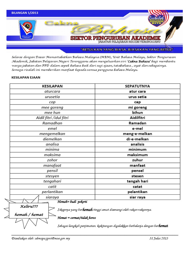 Ejaan Bahasa Melayu yang betul. Guru kanan Bahasa Melayu. Disini saya senaraikan beberapa perkara yang perlu diambil berat yang saya kira perlu ditekankan kepada semua termasuk kanak-kanak seawal usia 6 tahun.